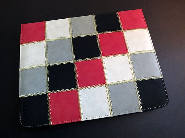 What we do like about it is the pattern of alternating microsuede squares that are stitched together on the outside of the case — a distinctive and very cool look.