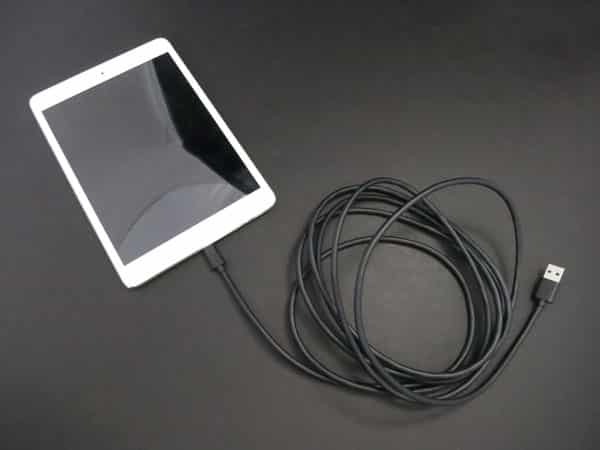 The wire isn’t as thick as it was in Griffin’s earlier XL 3 Meter USB to Dock Cable, but it works properly; an iPad mini recharged just as quickly as expected, even with the extended cable distance.