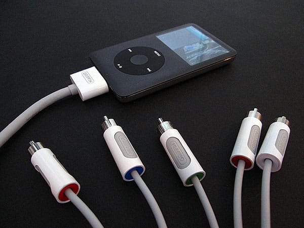 Without revisiting in detail the widespread anger that followed Apple’s decision to lock down the video output capabilities of both recent iPods and iPhone, it suffices to say that squeezing video out of these devices has generally required special $49 Apple Composite or Component AV cables, which have struck us and readers alike as rip-offs relative to their perfectly fine $19 predecessors. For the higher price, you now get one set of somewhat flimsy cables and a wall charger, plus an iPod/iPhone Dock Connector plug with an Apple device authentication chip inside. Without that chip, it turns out, the latest iPod and iPhone models refuse to output video, so third-party developers have been forced to include the same chip and charge prices as outrageous as Apple’s.