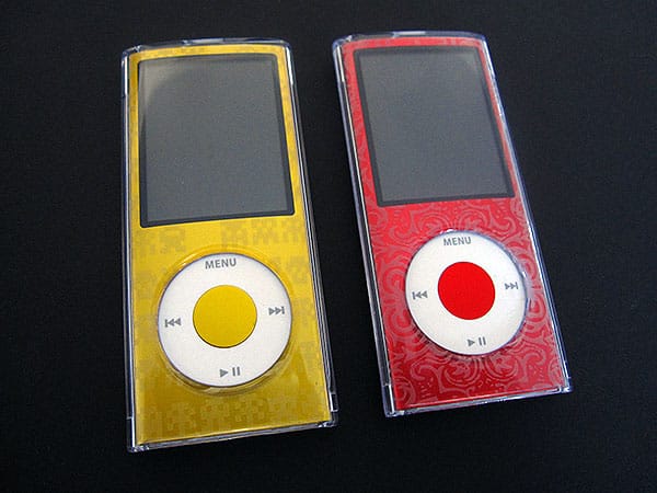 No other items are in the package, so the Click Wheel is left exposed, as are almost the entire bottom of the iPod nano, and the Hold switch at the top. Two versions, “Baroque” and “8-Bit,” are available, both with patterns that run over completely crystal clear cases rather than the frosted rear casings of standard iClear cases.