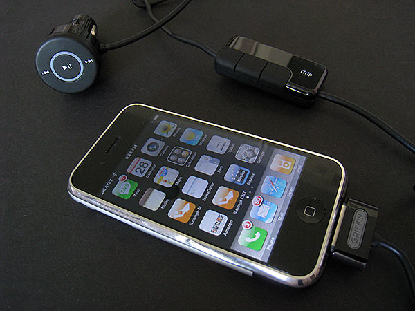 The other new part of iTrip AutoPilot is “AutoPilot,” which was previously sold as a separate, FM transmitter-less car charger that had some interesting features. First was a set of three remote control buttons that let you pause and change tracks on an iPhone or iPod; second was a multicolored charge indicator ring, and third was an audio output port. In iTrip AutoPilot, you get the charger, the multicolored charge indicator ring, and the remote control buttons, but not the line-out port.