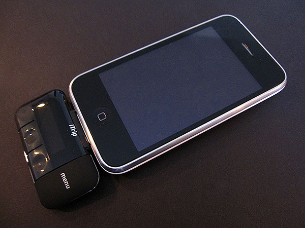In light of the App Store’s growing popularity — and Apple’s recent support for accessory-compatible apps — iPhone accessory developers now have to choose whether to create universally iPod- and iPhone-compatible add-ons, or instead release app-dependent accessories. Griffin Technology’s latest portable iTrip FM transmitter, the iTrip for iPod + iPhone With iTrip Controller App ($50), tries the Yogi Berra approach: it comes to that fork in the road and takes it. The result is an iTrip that can be used app-less with any Dock Connecting iPod or iPhone like its predecessors, but if you have an iPhone or iPod touch and download Griffin’s free iTrip Controller app, it gains a new on-device interface.