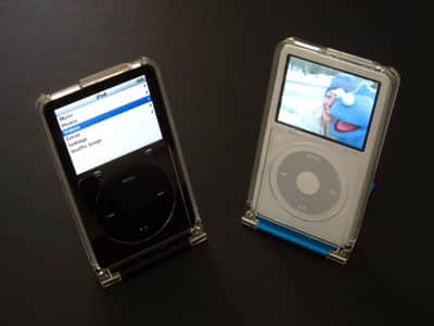 Pros: Solidly-constructed two-piece hard case with integrated stand for viewing an iPod’s video content easily without holding it; includes shells sized for both thin and thick iPod models; four colors available.