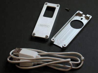 Pros: A highly attractive aluminum enclosure for the iPod shuffle that gives the cheap plastic player a professional-looking, solid metal exoskeleton. Full access to iPod shuffle’s controls, lights, and ports, with syncing via an included USB cable. Great price.