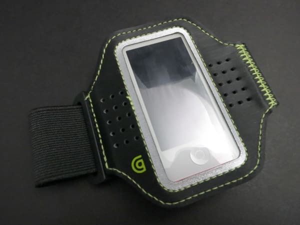 Finally, there’s Griffin’s Trainer. This one is a traditional armband, the likes of which are more common for iPhones and iPod touches. At the center of the accessory is a 3.5” wide, 3.6” tall neoprene holder with a clear plastic window the size of the iPod nano’s bezel. A slot on the back allows you to insert the device, with the ports at the bottom being the only segments actually exposed.