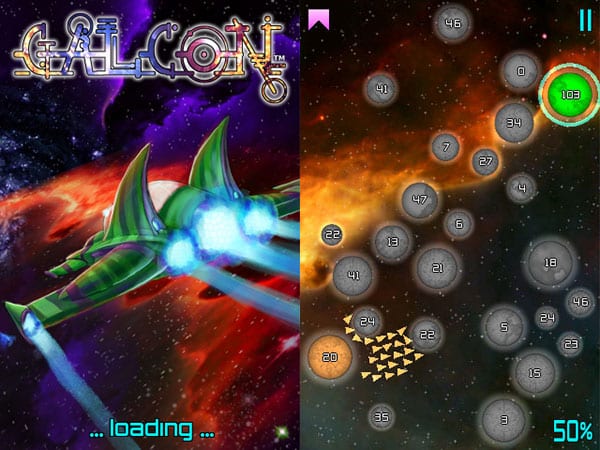 Point 50 of your ships at a 25-unit gray planet and you conquer it, achieving a new base from which to launch ships at the opponent’s planet. Act fast and your opponent will only need to be removed from one or two planets; wait too long and you’ll need to fight it out across the entire array of formerly gray moons. From level to level, the presentation is highly similar—the developer could, and should, create deeper and more varied background art, as well as sound effects that don’t sound like someone mouthing noises—but if you really get into the action, you mightn’t care that much.