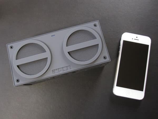 Following the design aesthetics of its iP4 FM Stereo Boombox, iHome has introduced a new lineup of boxy Bluetooth speakers under the Boom! line. Among them is the iBT24 Bluetooth Rechargeable Stereo Mini Speaker ($70), a small and highly portable sound box. Available in either grey or lime green, the rubberized design almost looks like something out of a cartoon — in a good way. It ships with a Micro-USB cord for power, and an aux cable for piping music either inwards from non-Bluetooth devices, or outward to another speaker.