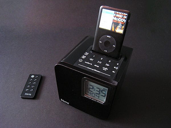 Worth noting up front is iH12’s name, which in iHome tradition is augmented in the product reviewed here by two additional letters: this is the iH12BR version, “B” for black in color, and “R” for packaged with a remote. iHome has historically released its products in multiple versions, including silver, white, and other colored cases, and sometimes in packages lacking the remote control, so we wouldn’t be surprised to see an iH12SR or iH12WR in the future.