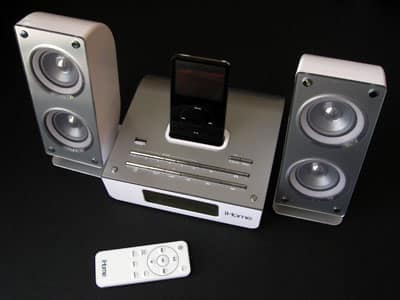 Pros: A four-component audio system for docking iPods and iPod shuffles, including a sophisticated iPod dock with integrated clock and very good AM/FM radio, twin satellite speakers with four total drivers, and a standalone ported subwoofer. Includes a RF remote control and the ability to toggle integrated screen to show large-font iPod track information. Pretty good sound for the price; works as a full computer or TV iPod dock thanks to dual video outputs and an iPod Dock Connector port.