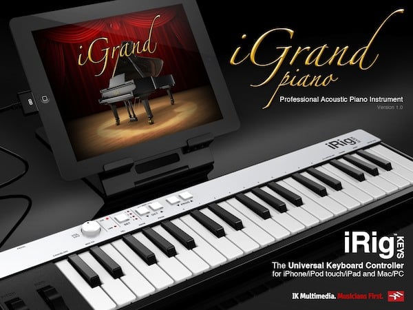 Available in both free and paid versions, IK Multimedia’s iGrand Piano for iPad ($20) and iGrand Piano FREE for iPad are designed to deliver a “concert-quality” piano application for iPad users, with highly realistic sampled piano sounds, built-in recording capabilities, and MIDI support. The free version includes a single standard grand piano plus a jazz upright, available for free upon registration and limited to four octaves centered on middle C, while the full $20 version of the app includes the full piano keyboard range and six more instruments: a classical piano, jazz piano, rich upright, rock upright, soft upright, and octave piano.