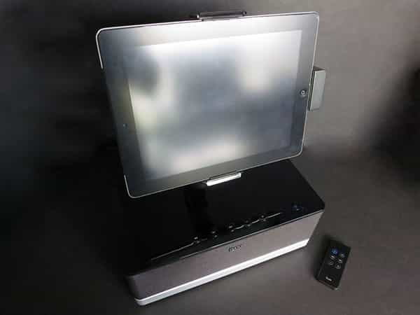 A wall power adapter and Infrared remote control are included in the package, along with supports for iPads and smaller devices.