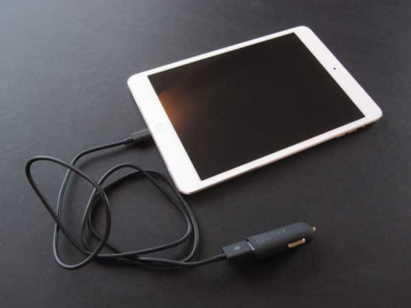 When Dual Auto Charger’s built-in Lightning connector is plugged directly into an iPad, it does charge it at the tablet’s fastest possible speed, even with an iPhone connected through the USB port. Flip them around though, so that the iPad is connected to a self-provided cable, and it drops down to a much slower speed. This indicates that the port is only capable of putting out 1A. As long as you know that, there should be no issues.