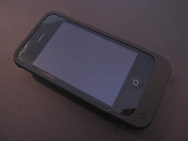 Fans of Incase’s slim plastic case designs may find one of Power Slider’s inescapable design elements to be less than pleasant: because there’s a battery in the back, and connection hardware on the bottom, this case roughly doubles iPhone 3G’s thickness and adds a bit to its height. Your iPhone goes from looking sleek to resembling a big black brick, and even users who aren’t thinness-obsessed may well want to remove the battery when it’s not in use.
