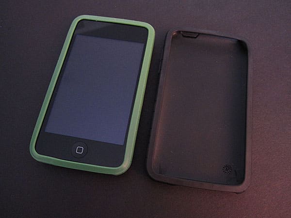 It is sold in black, green, and magenta versions, covering most of the polished metal back of the touch, its top and side buttons, and its front chrome bezel. The polished metal area around the touch’s Dock Connector and headphone port is exposed with an oval that’s able to accommodate Apple’s cables and headphone plugs, as well as oversized headphone plugs and some large Dock Connector cables; the case also fits into Universal Docks without an issue. It is also thin, adding little to the second-generation touch’s bulk, and though it doesn’t look fantastic, there’s certainly more design here than in the most basic $10 or less rubber cases one can find online. The matte rubber makes the iPod touch a little easier to grip than it is when it’s bare, just as you’d find in a case such as PDO’s $20 TopSkin or Belkin’s $25 Sonic Wave.