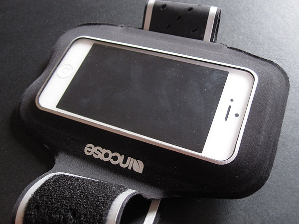 Selling for twice the price of Belkin’s offering, Sports Armband’s construction and materials are typically Incase, and quite nice. The setup is pretty standard: the armband is made from a neoprene-like material, with a front pocket that holds the phone with a touch-through clear plastic cover, and the back has a Velcro-equipped adjustable band.
