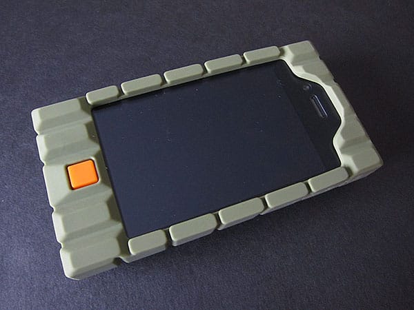 Billed as a “shock absorbing” case for the iPhone 4, Incipio’s brand new Bombproof ($30) was clearly designed to appeal to military/paramilitary iPhone 4 users: the rectangular, thick rubber block has a curved rear surface that resembles a grenade, while each of the eight colored versions has a contrasting block used as a Home Button protector.
