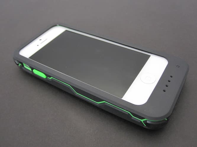 Incipio’s offGRID Rugged Battery Case for iPhone 5 ($90) looks like a combination of its standard offGRID combined with elements of its highly protective Atlas case. The result is a battery case that can take a beating, or at least more of one than most competitors can. Inside the case is a 2000mAh battery, down from the 2600mAh cell of offGRID, and comparable to the company’s $70 offGRID Express. Considering that, you’re really paying $20 for the extra protection. The case comes in white/purple, gray/black, blue/black, and black/green color schemes, each of which ships with a Micro-USB cable, a headphone extender, and a screen film.