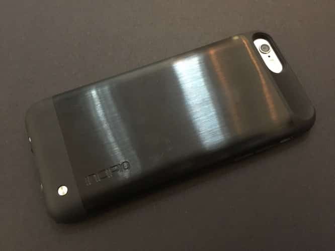 We were first introduced to Incipio’s new offGRID iPhone 6 battery case family at CES, with the company’s already-released offGRID Express earning a high rating. The upcoming offGRID Shine ($90) is very similar to offGRID Express — it has the same 3000 mAh battery and is roughly the same size — but a $10 price premium offers a different design. Unlike Express, Shine is a one-piece case, with a brushed shiny finish on the back. The power button here can be found on the lower back section of the case next to its battery meter lights, and the micro-USB charging port is located on the bottom of the case.