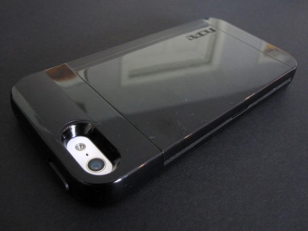 Incipio says Stowaway is made to hold up to three credit cards or IDs in the flip-open compartment on its back. Connected to the body with a rubber hinge along the right side of the case, the door is just about the same length as the iPhone 5’s aluminum back, and there’s no way for the cards to slip down in front of the iPhone 5’s antennas.