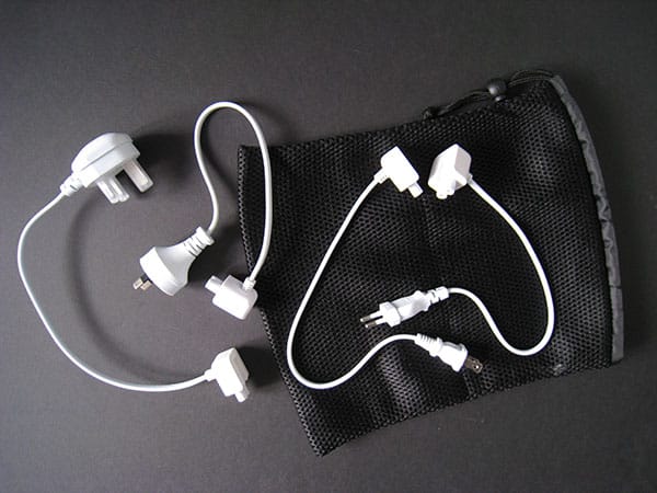 Unlike Apple’s similar World Travel Adapter Kit, these use cables so that you don’t need to block a spare outlet with Apple’s power blocks, and you also get a carrying bag for all of the parts.