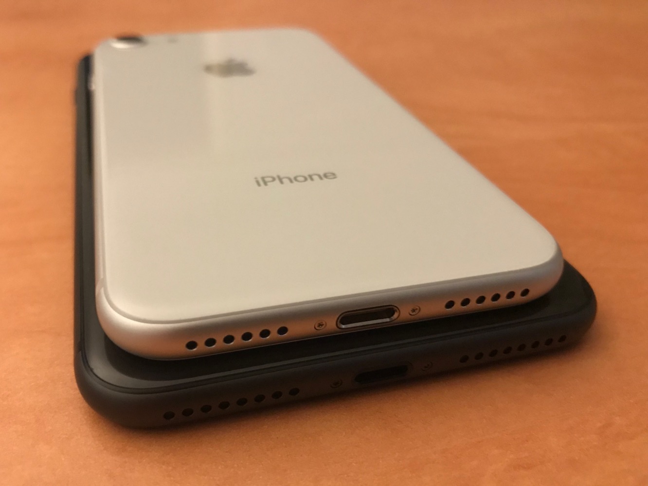 However, while the iPhone 8 and iPhone 8 Plus retain the same form factor as their predecessors — they’ve grown less than half a millimeter in each dimension — they actually make a subtle but significant change with their return to the glass-backed design of the iPhone 4 — a model that we still feel was the most elegantly-designed iPhone that Apple ever produced. Although Apple’s switch to the glass backing on the iPhone 8 is surely more pragmatic than aesthetic — it’s necessary to support the new wireless charging features — it definitely makes the iPhone 8 models feel more “premium” than prior models. With the possible exception of last year’s jet black iPhone 7, this is the first iPhone model we’ve seen in a while that we actively dislike putting into a case.