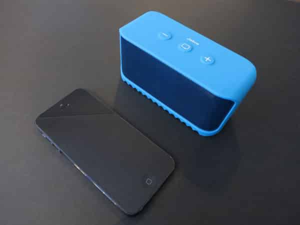 Sonically, there’s very little to say about Solemate Mini that hasn’t been said dozens of times before about functionally similar speakers. The drivers put out midrange- and bass-focused sound at volumes that are short of small-room filling, but adequate for hearing your music louder than any iOS device’s own speakers. Streaming lag is minimal, so voices in TV shows and movies sync up pretty closely with what’s on your device’s screen, and an integrated microphone works nearly as well for speakerphone calling as the ones built into current iPhones; callers noted only a slightly mechanical edge in the treble when we spoke.