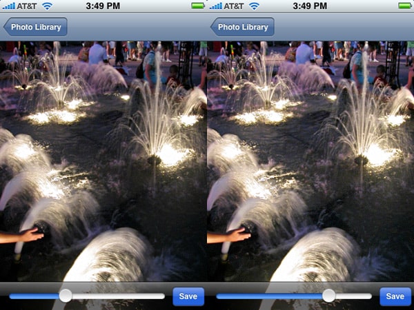 Once a photo has been selected, it will appear on the screen with a navigation bar at the top for selecting a different picture, plus a slider bar and save button at the bottom. The app saves in 1024×768 resolution, and automatically places the slider at what it considers to be the optimal position.