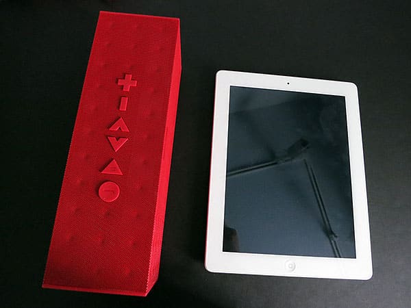 Jawbone’s less than ideally considered transition from small to large is the single most glaring issue in Big Jambox. While the original 6” by 2.25” by 1.5” version stood out because small direct competitors were both few and obscure, the new 10” by 3.5” by 3.1” model has plenty of similarly-sized wireless rivals, all priced more aggressively, and most were more thoughtfully designed for portability. Competitors such as the $100 Soundfreaq Sound Kick and $150 Logitech Wireless Boombox both were designed to be slender, and could go anywhere in common bags. Big Jambox’s size and shape both defy that.