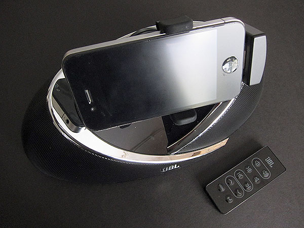OnBeat continues and actually improves upon a new design theme JBL introduced last year: the “Weave.” Weave moves past the company’s earliest iPod and iPhone speakers, which used soft curves with alien-inspired shapes—saucers, alien pods, and the like—by replacing the alien elements with the look of layered fabrics, molded instead from attractive mixes of metal and plastic. On Stage IV and On Stage Micro III debuted the Weave look last year; OnBeat softens it further with two chrome-tipped arcs that form an almost heart-shaped center, from which a rotating iPod, iPhone, and iPad dock juts out. Most of OnBeat’s body consists of matte black speaker grilles, save for a glossy black bottom and similarly shiny buttons and ports on its right and back sides. It’s one of the nicest-looking speakers JBL has released in years, and for a company that routinely breaks molds with its designs, that’s really saying something.