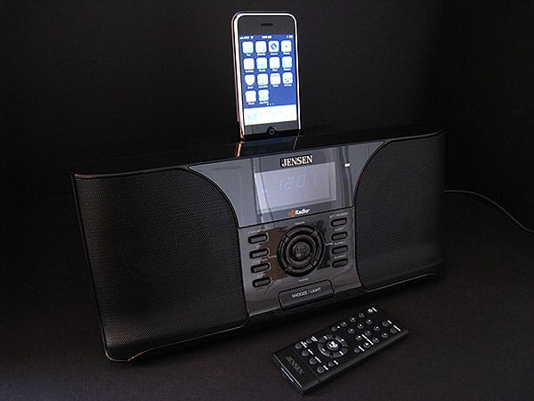 It isn’t often that a comparatively inexpensive speaker system thoroughly embarrasses a more expensive one, but Jensen’s new radio, alarm clock, and iPod speaker system JiMS-525i ($150) does exactly that with Polk’s earlier, similar i-Sonic ES2. Like i-Sonic ES2, the JiMS-525i offers support for both HD Radio tuning and iTunes Tagging, but Jensen’s design delivers on almost all of Polk’s promise — for $360 less. Better yet, JiMS-525i is both iPod and iPhone-compatible, bucking the recent trend of overpriced iPhone-ready audio systems by delivering a very strong feature set at a price anyone can afford.