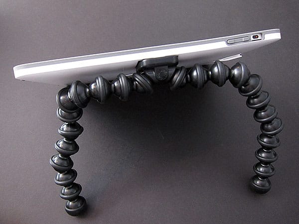 The stand uses the company’s signature ball joint design to provide two flexible legs that can be used to grab onto objects or just keep the iPad upright on a table, making up for the absence of Joby’s typical third arm by boosting the size and strength of the two that are here.