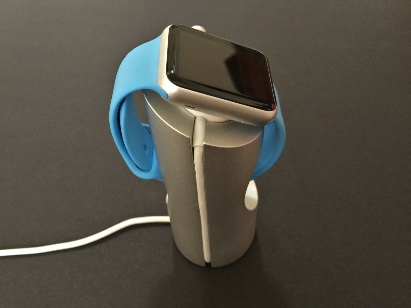 It won’t take up much space on your nightstand, as it stands just 4” tall and is about 2” across at its widest point. Though it only weighs about 0.9 ounces, its weight is mostly at the bottom — it feels solid and shouldn’t tip during use. We like the way the charging cable is managed; it’s simple but effective, and shouldn’t damage the wire. One thing to note, however — all of Just Mobile’s promo shots show an Apple Watch with the band looped.