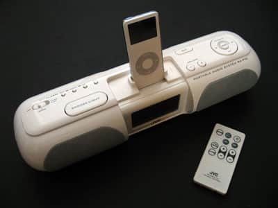 There are now dozens of portable iPod speaker systems out there, many at least vaguely similar in design, sound quality, and features, and most rectangular in shape. In recent months, Logitech and JVC have released two more rounded, tube-like portable speakers – Logitech the MM32 ($80) and JVC the RA-P10 ($130) – each with four audio drivers arrayed in a straight line. For Logitech, the mm32 is a big step down in pricing and performance from the earlier, superb mm50, while the RA-P10 is JVC’s very first portable iPod speaker, and more sophisticated in features. Our combined capsule review looks at both systems together.
