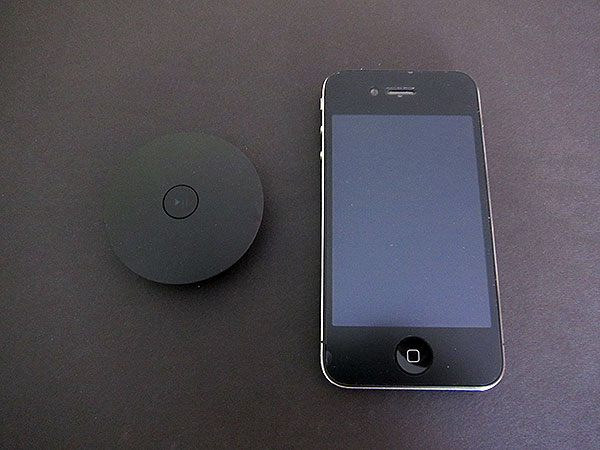 Equipped with a Bluetooth 2.1 chip and a DSP co-processor for audio and voice filtering, AirBlue has a rechargeable 10-hour battery inside and a play/power button on the top, enabling you to send music wirelessly from most iPod touches, iPhones, and iPads to the puck-shaped accessory, then through it to the included 3.5mm to 3.5mm or stereo RCA cables.