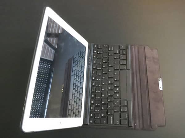 Then there’s KeyFolio Pro, a much more streamlined option than the other two. Designed as a sheepskin folio, it uses a somewhat traditional, arguably dated, frame-style holder, which leaves the corners of the iPad exposed while protecting its bezel. There’s also a holder for a stylus, here an elastic band rather than molded plastic. A magnetic tab wraps around from the back to the front, keeping the case closed. Magnets also prop the iPad into a standing position. It’s worth nothing that despite the use of magnets for other purposes, none of the cases automatically locks or unlocks the iPad as they’re opened or closed.