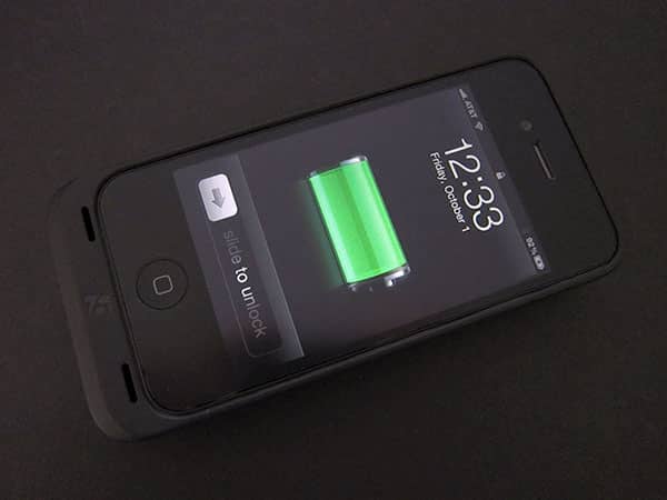 Of the three batteries, PowerGuard is the least expensive, and also has the smallest rechargeable cell inside—1200mAh, which Kensington says will add four hours of talk time or five hours of video viewing to the iPhone 4. In practice, PowerGuard added 41% more power to a powered-on, 3G/Wi-Fi-connected iPhone 4 with the screen turned off, no calls coming in, and no audio playing, going from 20% to 61%. Notably, PowerGuard performed this charging process very rapidly, benefitting from a 1-Amp charging speed, faster than Juice Pack Air. Though the actual charge level would have been lower if the iPhone 4 was fully discharged, or higher if the device had been placed in Airplane Mode, a 41% gain in battery life under “charging but still on” conditions is good for the asking price, and enough for at least three hours of talk time.