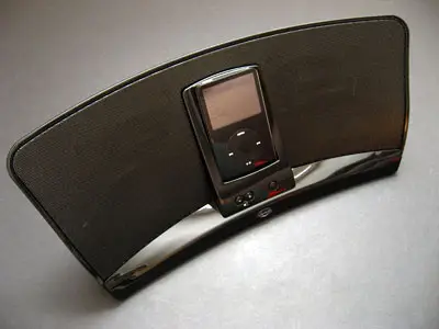 Pros: A solid all-in-one speaker system with unique styling, a remote control, adapters for mini, nano, and non-iPod docking audio devices, and a lower-than-Bose SoundDock price. Smooth sound, good bass, and relatively low distortion at higher volume levels.
