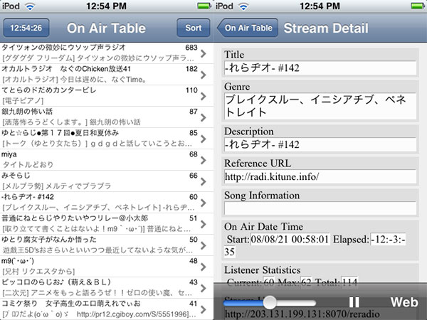 Another app, LadioTouch (Free), is a Japanese-only Internet radio streamer that pulls channels from Japan’s livedoor NetLadi, with a not especially sexy interface that’s very data heavy but does provide a lot of information for users.