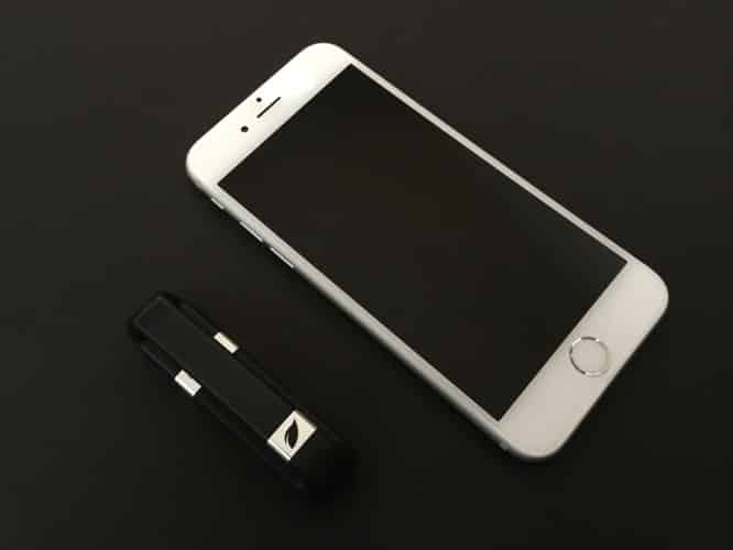 iBRIDGE is about the size of most flash drives, at 2.48” long. The curved design allows the larger part of the memory stick to curve around the back of an iOS device when in use, and iBRIDGE’s flexibility should allow it to fit most cases, as long as the case’s Lightning port is large enough. It’s thoughtful, allowing for easy use of an iPhone while connected.