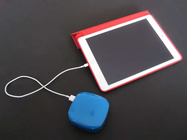 The battery has two USB outputs. One is listed as offering 1.2A charging power, the other, 2.1A. We connected a fully depleted iPad Air to the port labeled with two lightning bolts, indicating it was the faster of the two. After unplugging and replugging the battery when a “not charging” message appeared after the tablet powered back on, it began charging as normal.