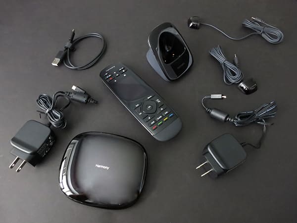 Since Logitech’s Harmony division has made well-regarded universal remote controls for a decade, it could be resting on its past successes—slightly tweaking earlier designs, adjusting their prices, and pushing “new” units out the door. Harmony Ultimate is a somewhat more ambitious product. Logitech started with two existing accessories, the $250 standalone touchscreen remote Harmony Touch, and the $100 iOS-compatible Wi-Fi hub Harmony Link, improving each device’s hardware while tying them together in new ways. The result is one package containing one dedicated universal remote control plus a “Harmony Hub” that lets your iOS device serve as a second part-time universal remote control, plus all of the power, micro-USB, and Infrared extender components needed to make both parts work. All that’s missing from the box is the software, which you access over the Internet.