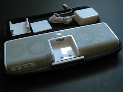 Pros: A four-driver dockable, portable speaker system with impressively balanced, low-distortion sound, an included remote control, carrying case and internal rechargeable battery, all at a reasonable price.