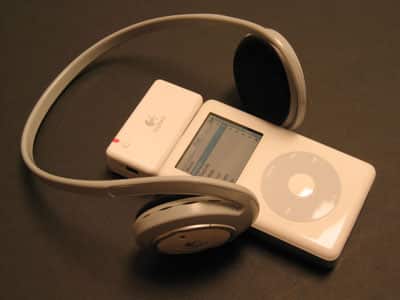 Pros: iPod-matching wireless headphones that work from a distance of 30 feet, available at a price comparable to other wireless iPod options. Includes rechargeable batteries for both the transmitter and headphones, and track/play/pause controls, limited volume controls.