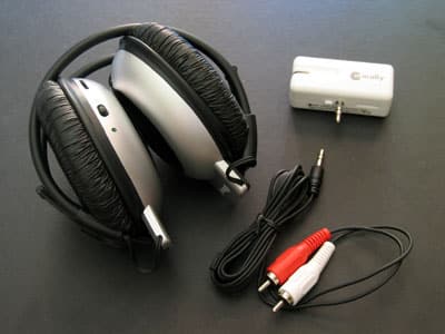 Pros: The iPod’s least expensive Bluetooth wireless broadcasting system to date, with battery-powered transmitter and headphone receiver that sound good, work for nearly thirty feet without major issues, and connect to a stereo with included cabling for better wireless sound than competitors.