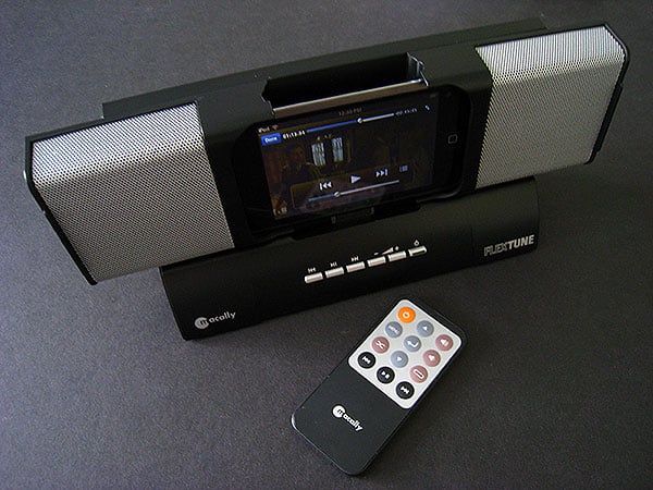 So many iPod speakers have been released at this stage that it’s hard to really get excited about any new one that might appear: dozens, perhaps hundreds of them look, feel, and sound pretty much the same. So it was with some interest that we received Macally’s new FlexTune ($70), a brand new all-in-one speaker designed to address a relatively recent concern: how do you add speakers to an iPod touch for both widescreen video viewing and standard horizontal audio purposes?