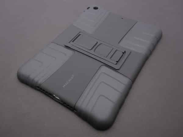 Although you don’t absolutely have to remove the cross-shaped piece of hard plastic on the back of the case when you install the iPad, doing so helps ensure a proper fit. The rubber is sized without any wiggle room, and perhaps a hair too small, so if the plastic is left on, the rubber may not curl over the edges correctly. If forms a short lip over the screen, while protecting the corners of the tablet with extra material.
