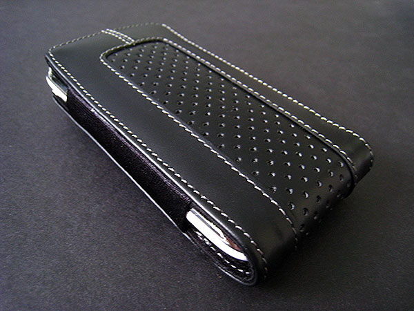C.E.O. Sleeve’s single biggest improvement is newer, cooler styling reminiscent of Incase’s designs for the prior iPhone: like Marware’s other leather cases, this one mixes two bands of flat, untextured leather with a large stripe of perforated material that runs down the center. On the back, that stripe is interrupted by a Multidapt belt clip mount that can be used with various Multidapt attachments. Though the leather on the front doesn’t look expensive, it’s nice for the price, and the mix of textures adds to its appeal.