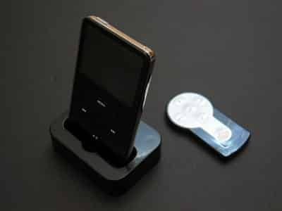 Brief testing of the Docking Station revealed easily-heard noise in its audio signal when the power supply was connected without an iPod; the noise thankfully disappeared when the iPod was connected. Our test iPods fit in the dock without an issue regardless of thickness, and performed audio and video without a hitch. Charging also worked properly, as did the remote control, which isn’t up to the standards of Apple’s official Remote, but works fine within the dock’s line of sight.