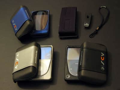 Cons: Front screen protector looks “wet” on iPod’s screen. Lid is no longer as useful or easy to attach/detach as its predecessor for iPods and minis, and its hand strap is a fairly simple implementation of an idea done better in other cases. Asking price isn’t cheap, but counterbalanced by sheer number of packed-in items.