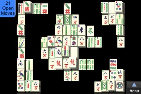 The iPhone’s Mahjong titles use the same tiles, but are designed to be played by one person rather than a group; you match sets of two like tiles until every tile has been removed from the board. Because this is a one-player game, some refer to this version of Mahjong as Mahjong Solitaire, and though there are standard patterns and rules for presenting the tiles to be matched, each version of the game approaches the rules differently.